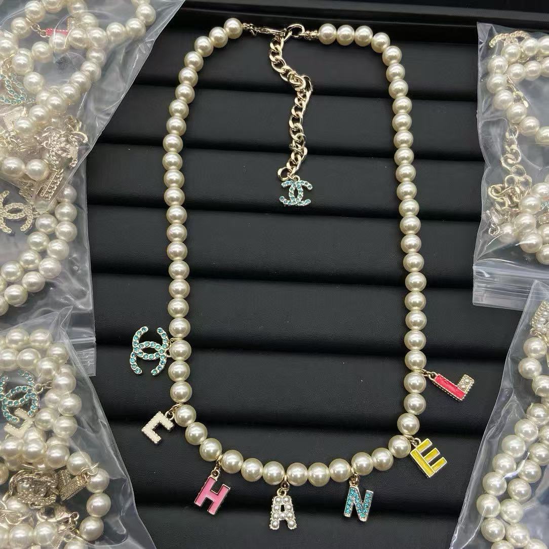 CHANE1 カラフルレターパールネックレス【50%割引+送料無料】
