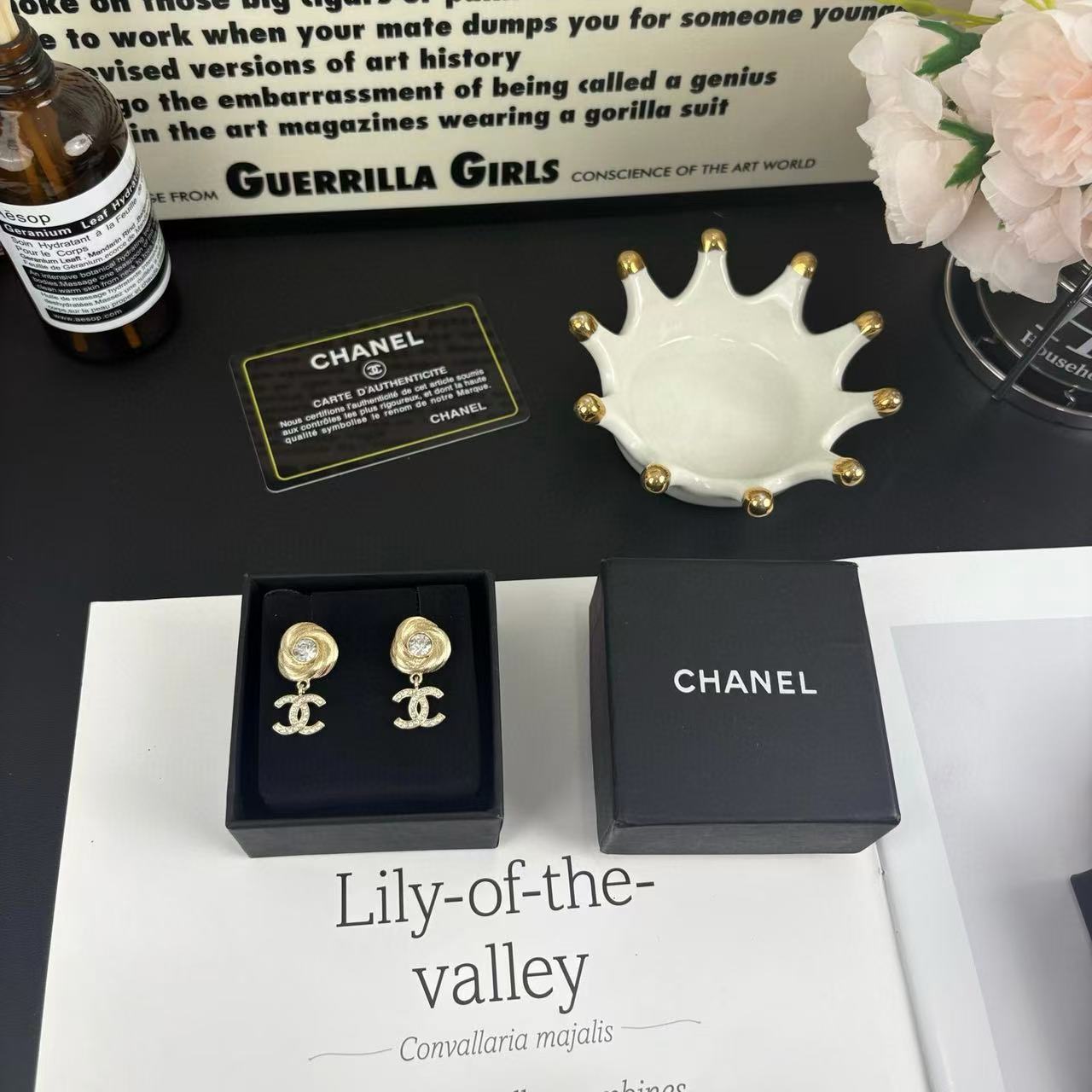 CHANE1 フルダイヤモンド ダブルC 四つ葉のクローバー ピアス【 50%割引+送料無料】