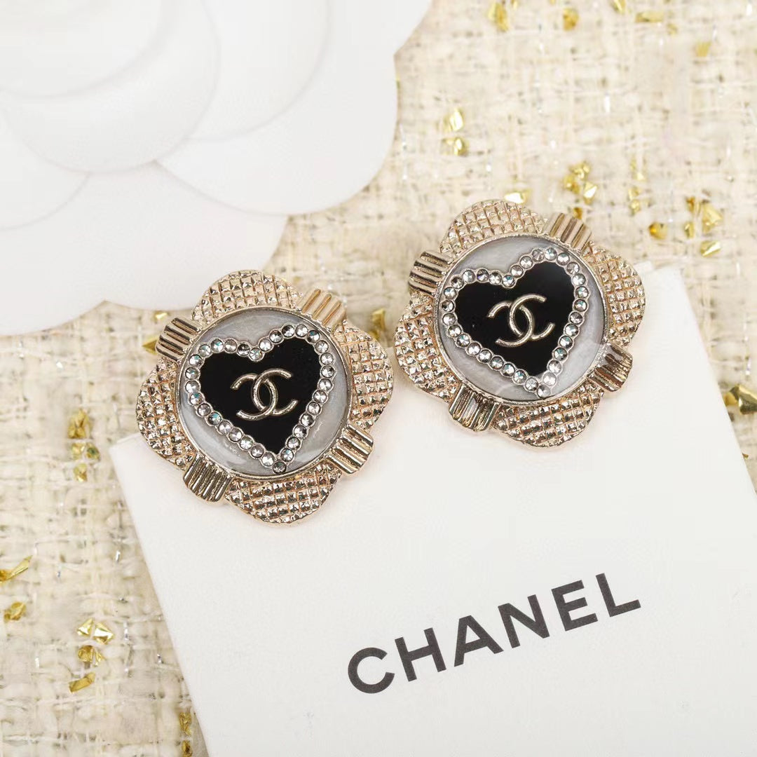 CHANE1ダイヤモンド付きハートスタッドピアス【50%割引+送料無料】xxzzed