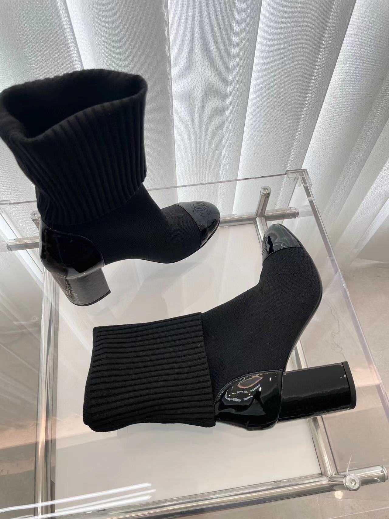 CHANE1 高品質パテントレザーウールブーツ【50%割引+送料無料】
