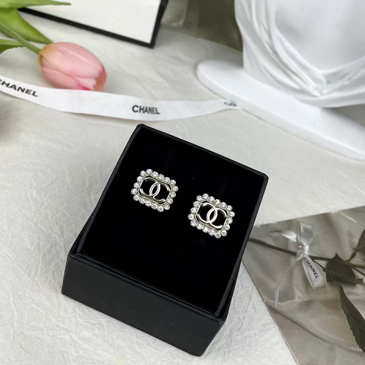 CHANE1 スクエア ダブルC ダイヤモンド イヤリング