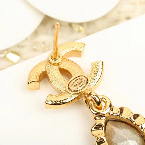 CHANE1ダブル C ダイヤモンド ドロップ ピアス【50%割引+送料無料】