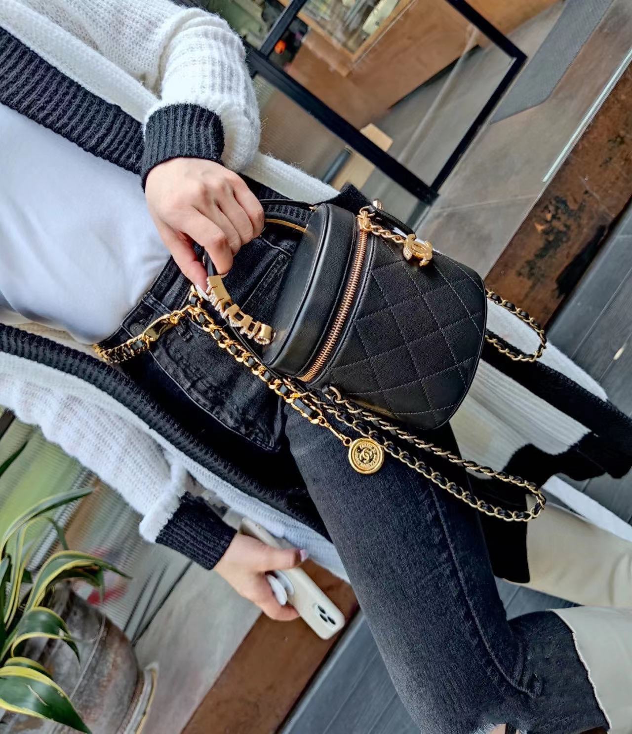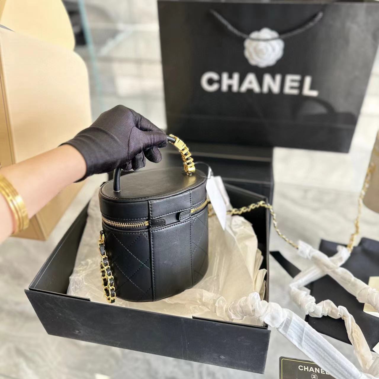 CHANE1 ブラック ゴールド トート/バケット バッグ【50%割引+送料無料】