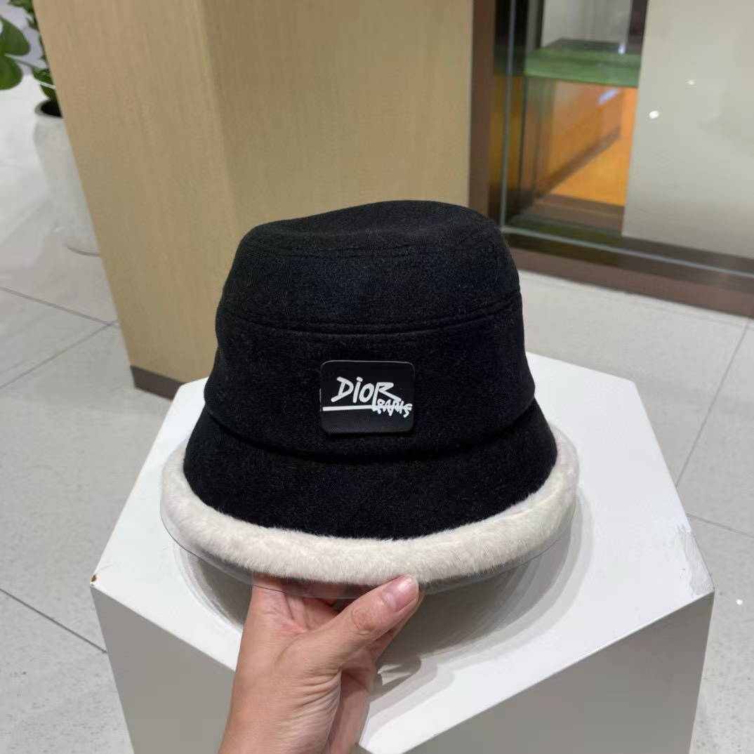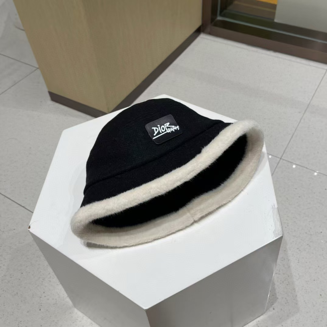 DI0R プラッシュ カラーブロック バケット ハット