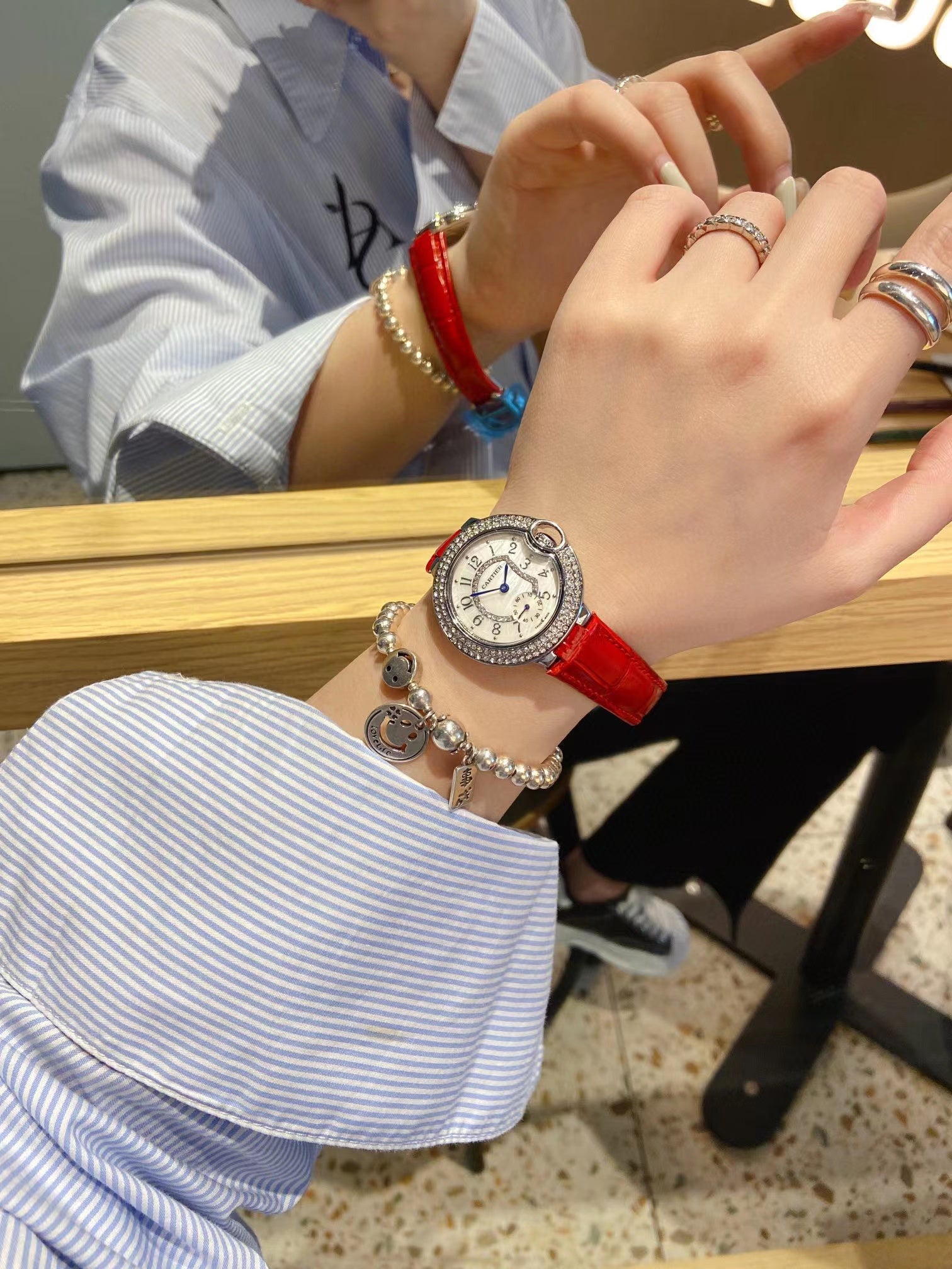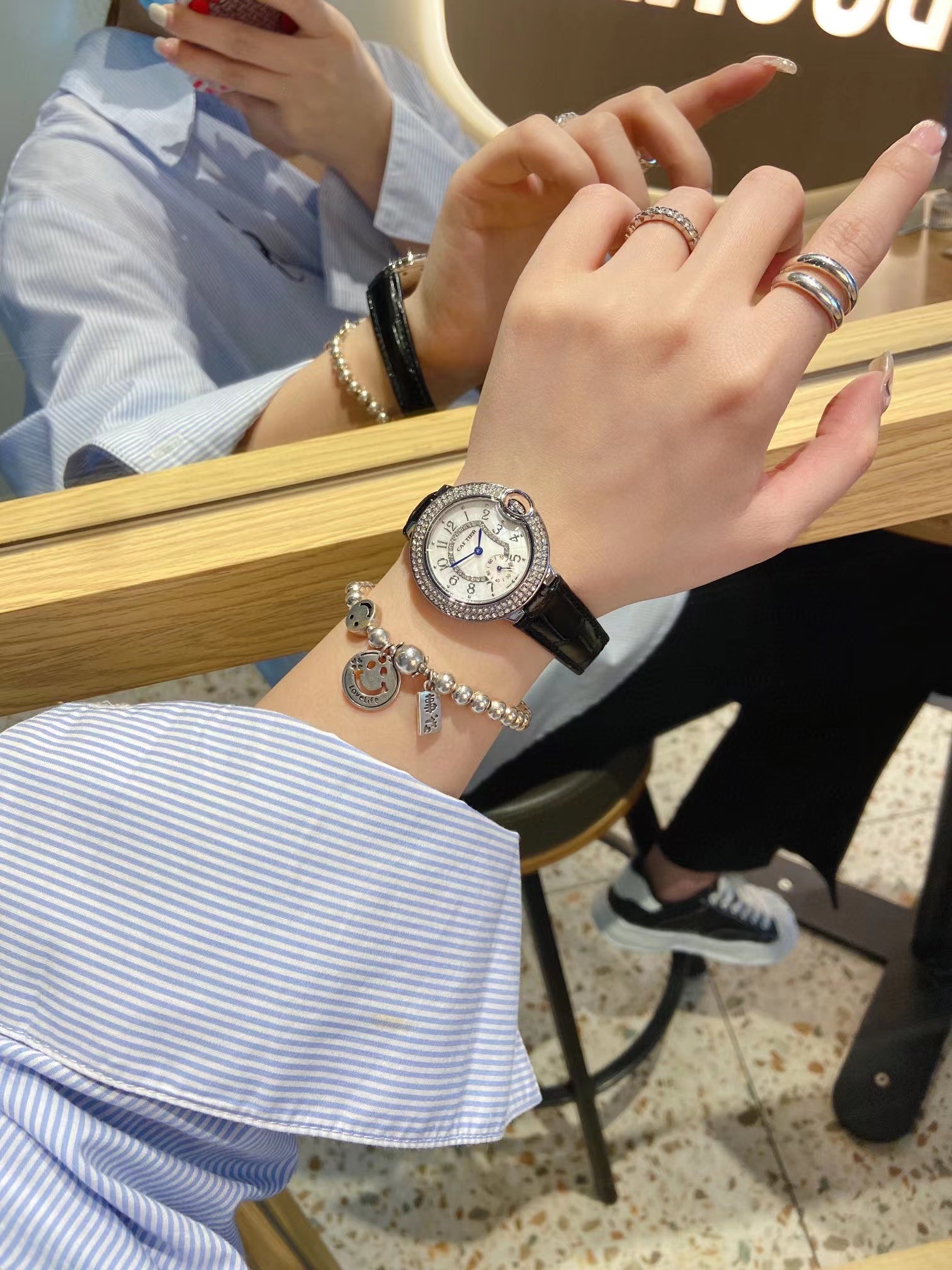 CARTIER ãã«ãŒãã«ãŒã³ã·ãªãŒãºãäž¡æãšããŒãã¯ã©ãŒãã®æèšãããŒã«ã·ã§ã«ãã§ã€ã¹ããµã€ãº33mmããªãªãžãã«ããã¯ã«ä»ããããã¬ã€ã€ãŒã«ãŒãã¹ãã³ã¹ãã©ãããã¹ã¯ããã¹ããŒãã€ã€ã¢ã³ããã»ãããããªã³ã°ãé«çŽæèšãããŸããŸãªå Žé¢ã§èªåèªèº«ãåæ ããŠããããšã瀺ããŠããŒã¯ãªåæ§ãšé
