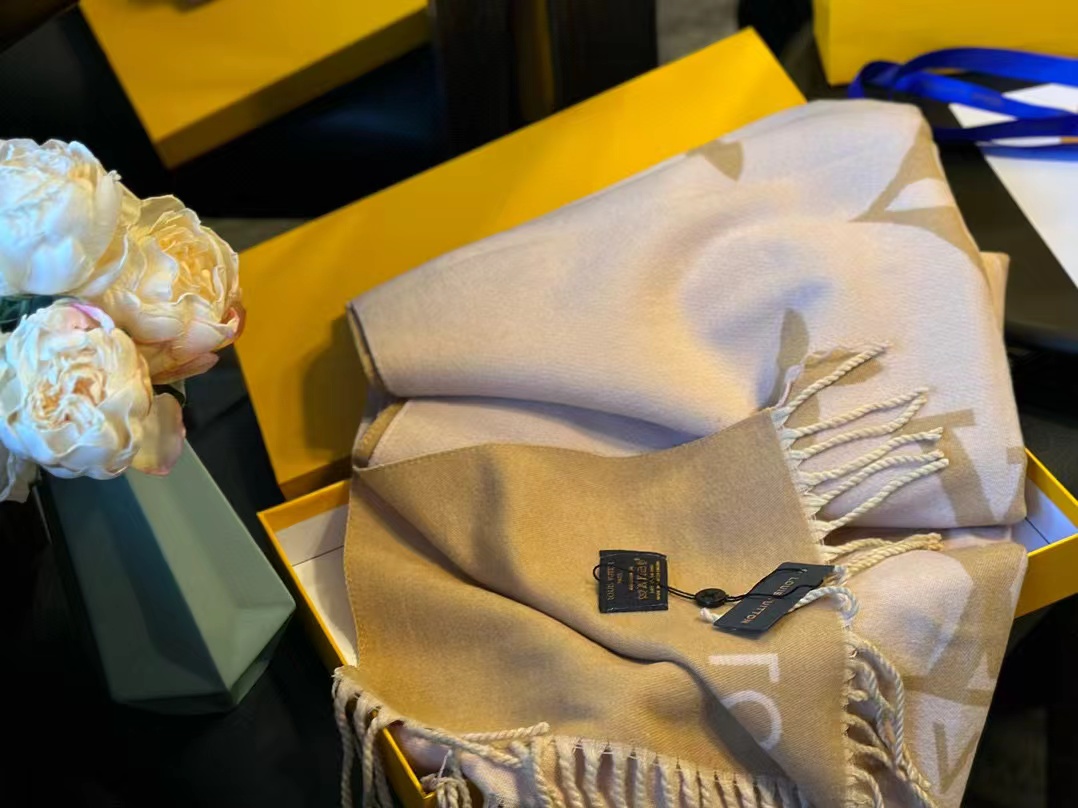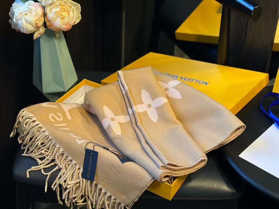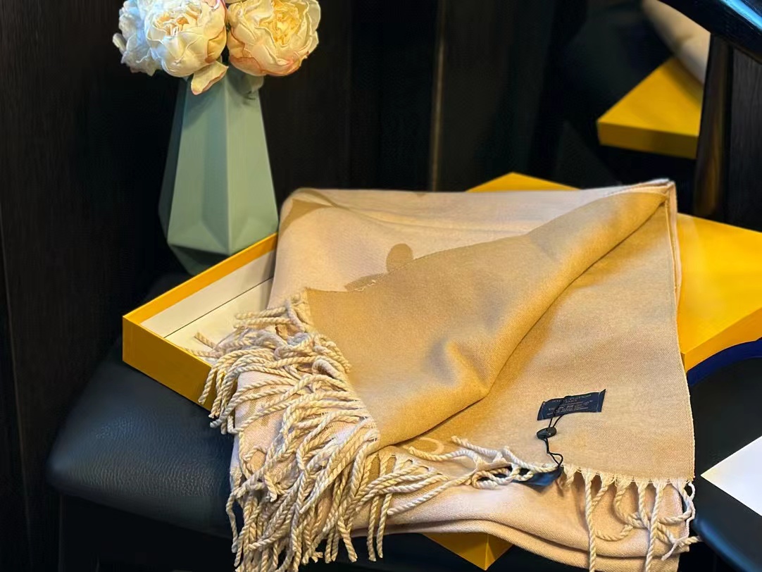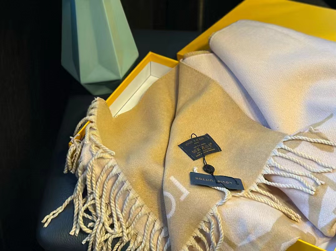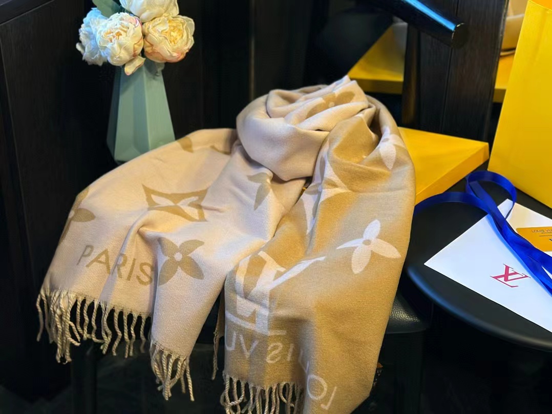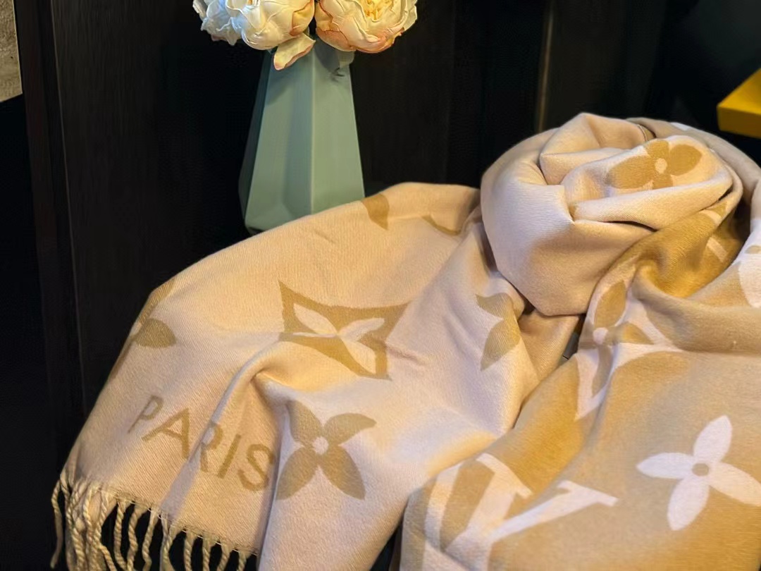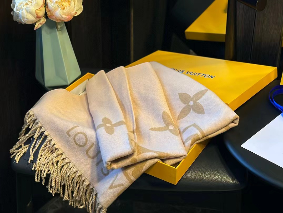 LV四つ葉のクローバーカシミヤフリンジスカーフ