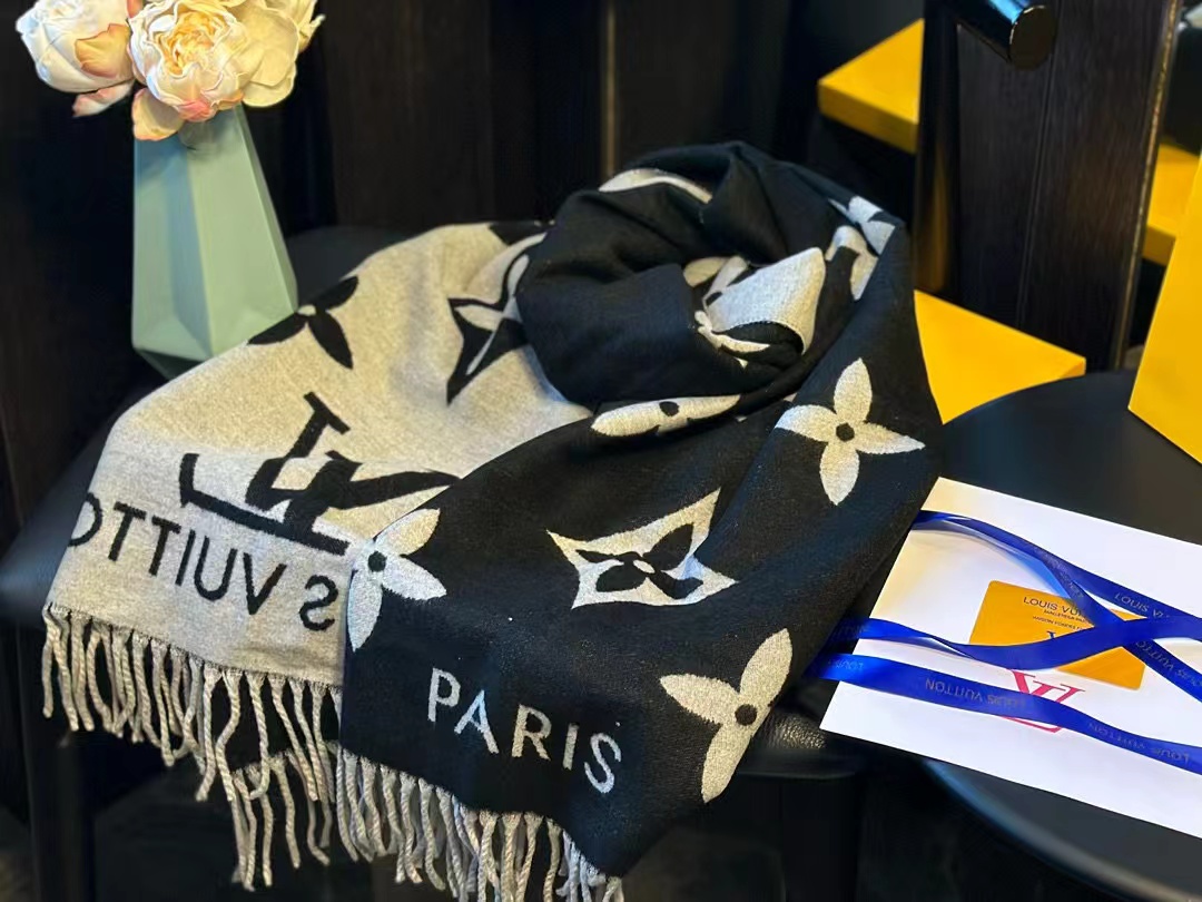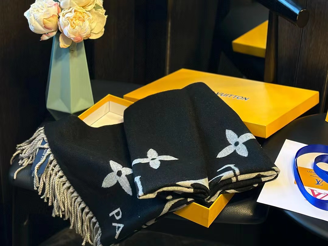 LV 四つ葉のクローバー タッセル カシミヤスカーフ【50%割引+送料無料】