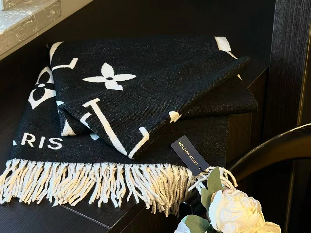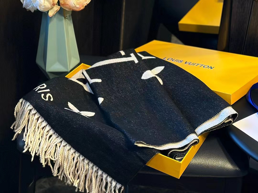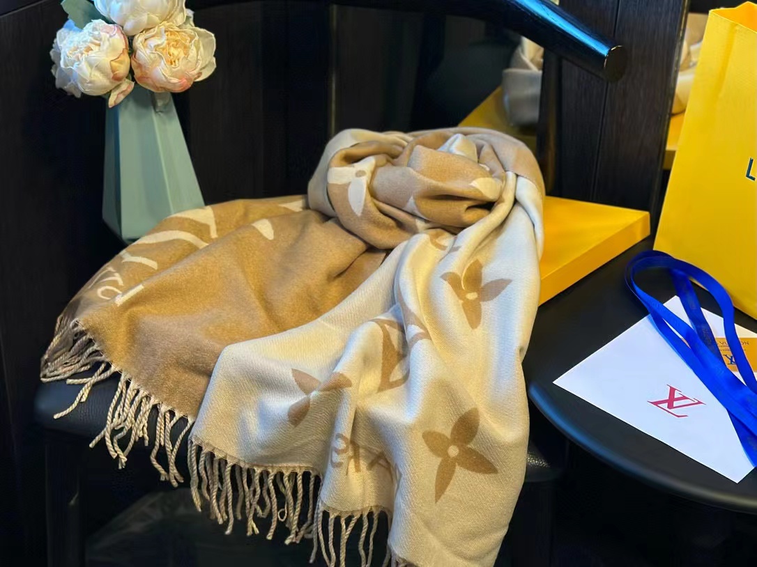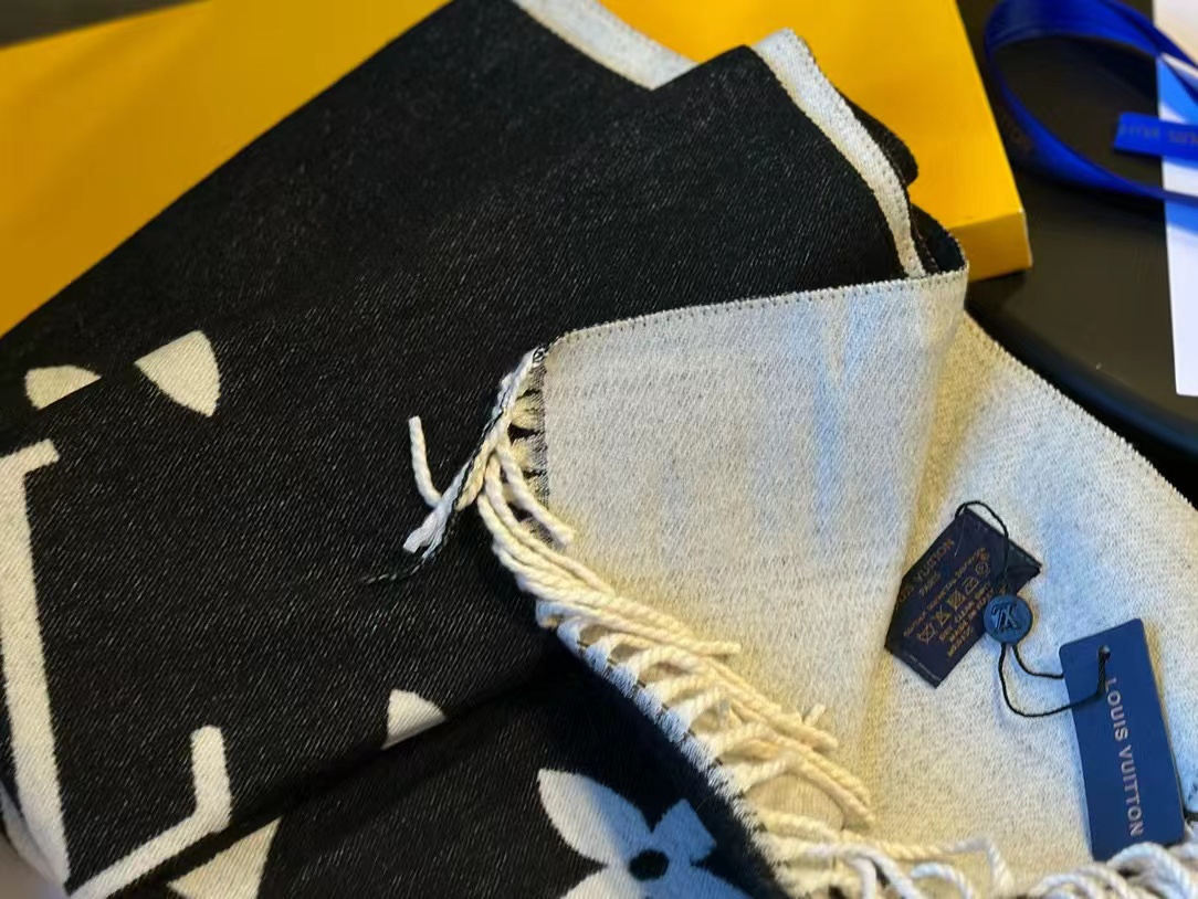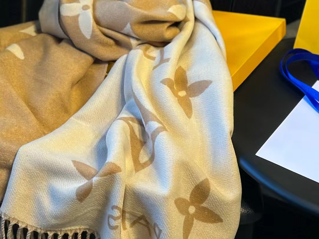 LV 四つ葉のクローバー カシミヤ フリンジスカーフ B【50%割引+送料無料】