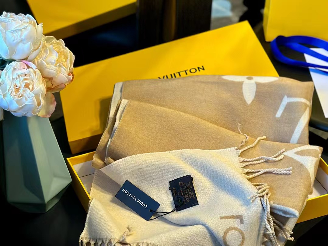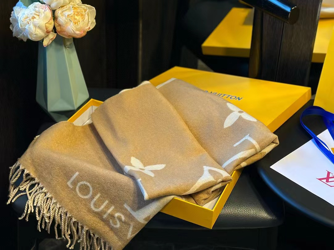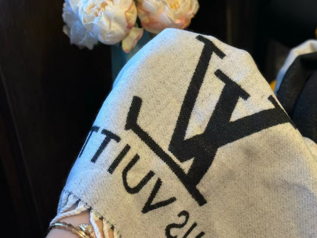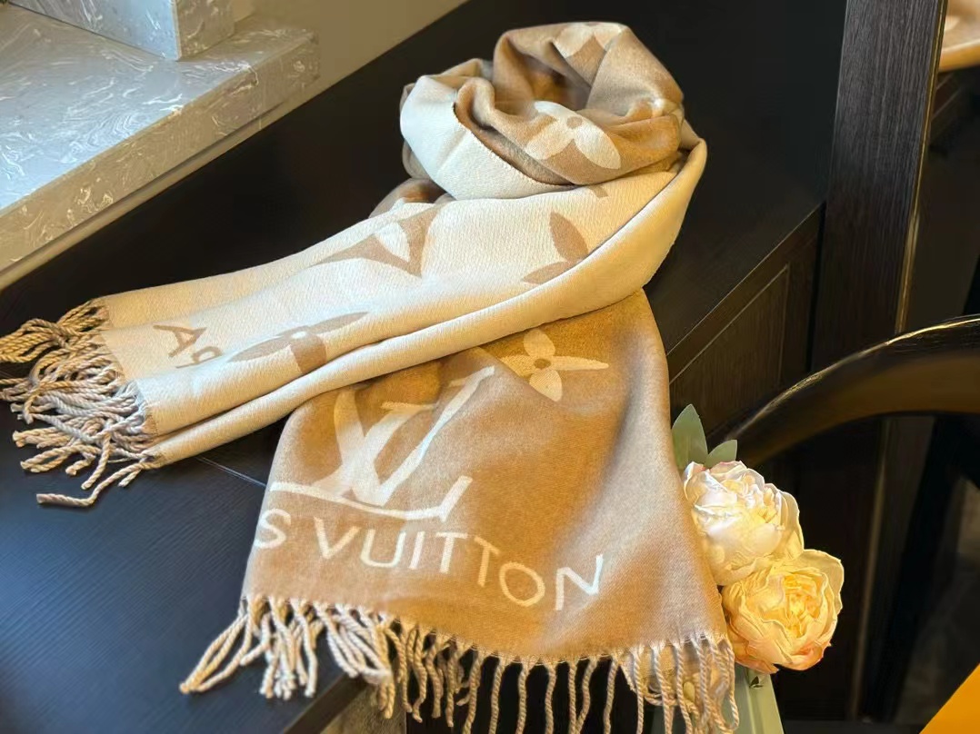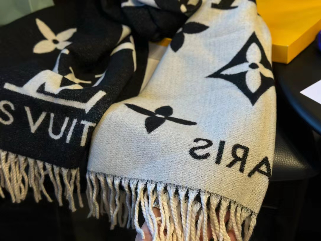 LV 四つ葉のクローバー カシミヤ フリンジスカーフ B【50%割引+送料無料】