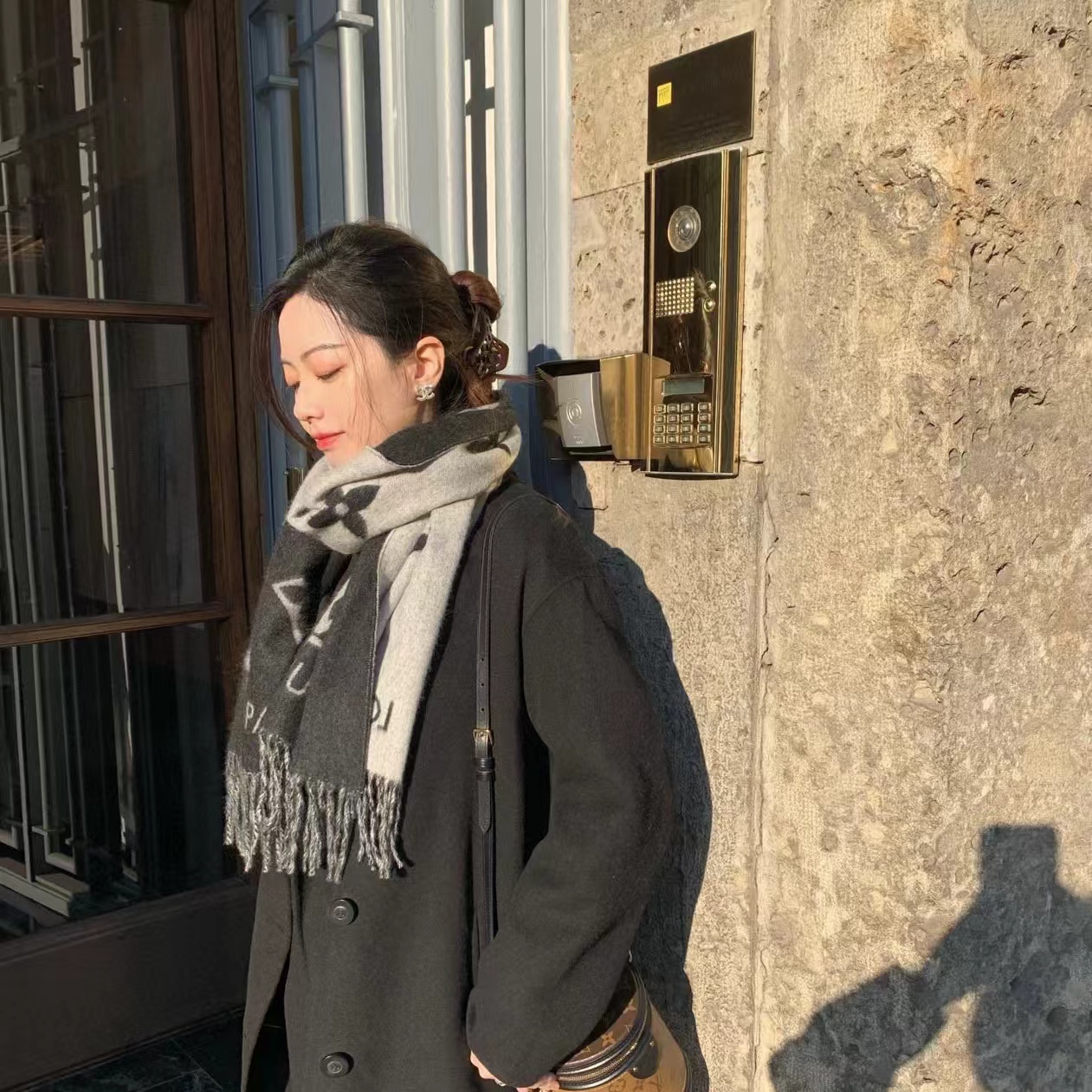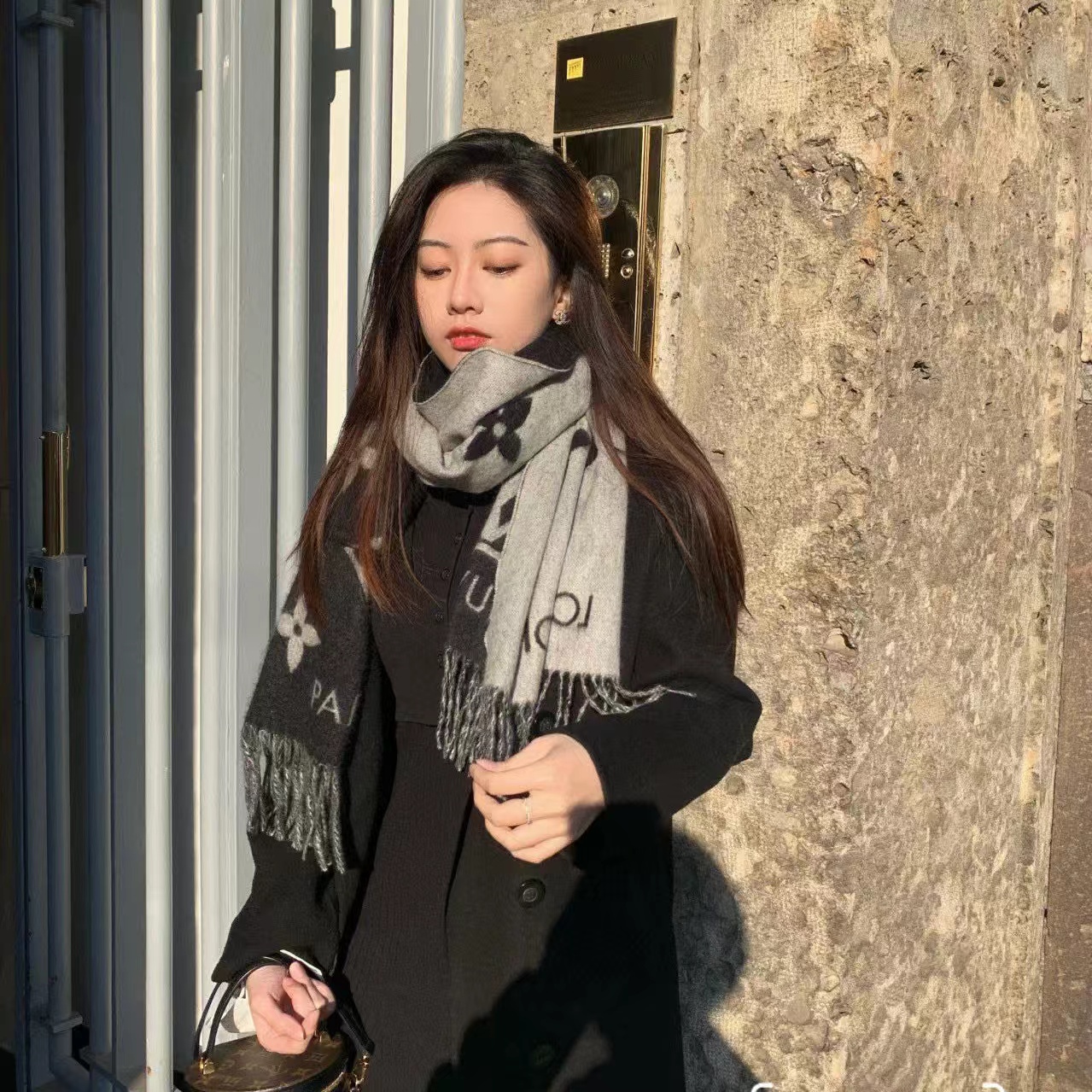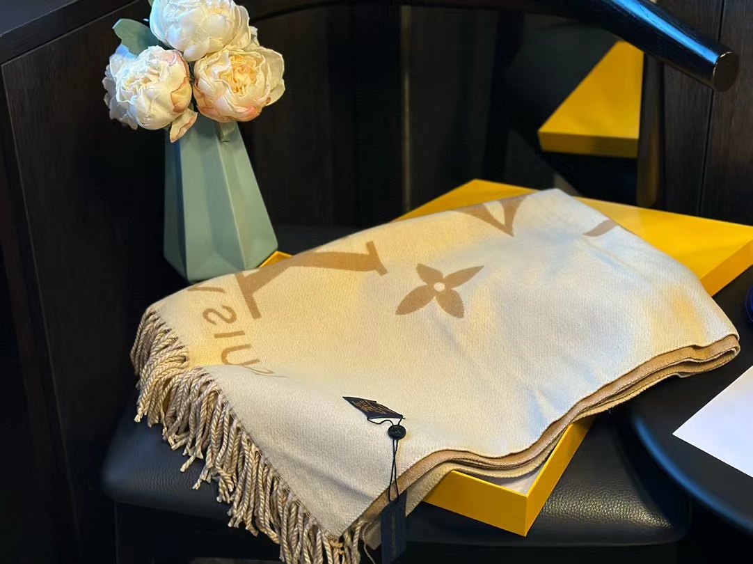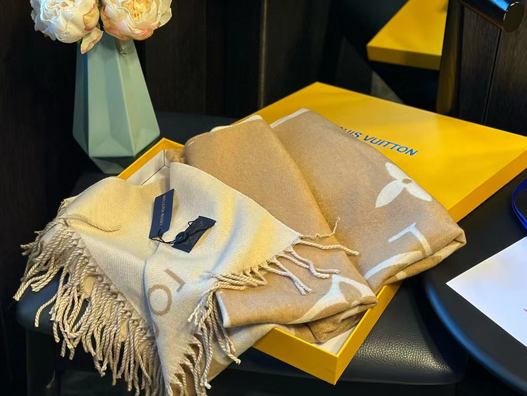 LV 四つ葉のクローバー カシミヤ フリンジスカーフ B【50%割引+送料無料】