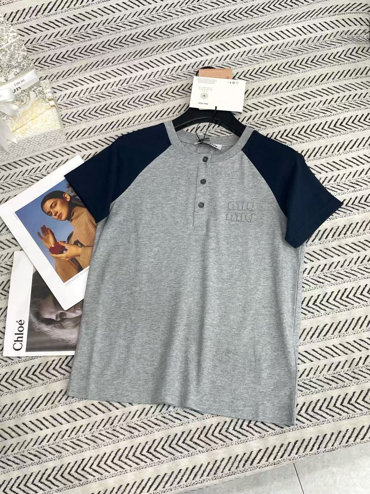 M1UM1U カラーブロック ボタンアップ Tシャツ【50%割引+送料無料】