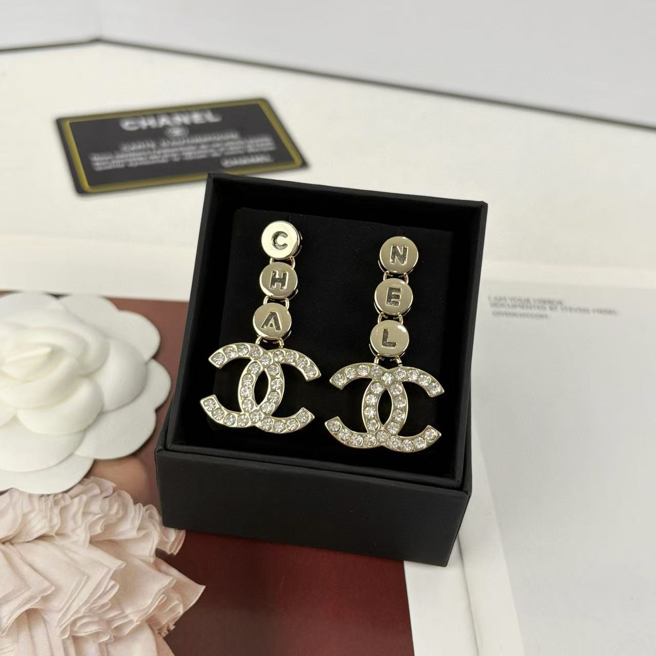 CHANE1 ダブル C ダイヤモンド レター スタッド ピアス