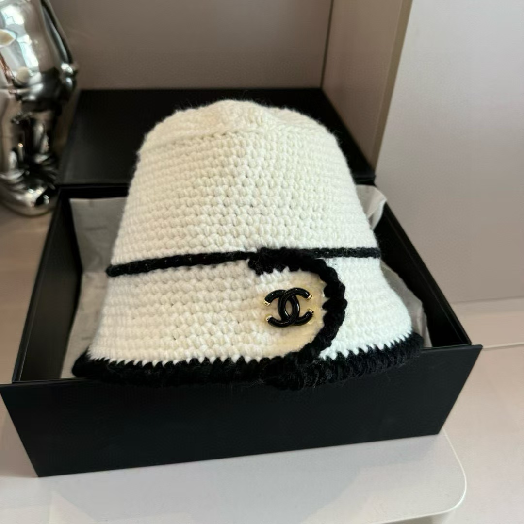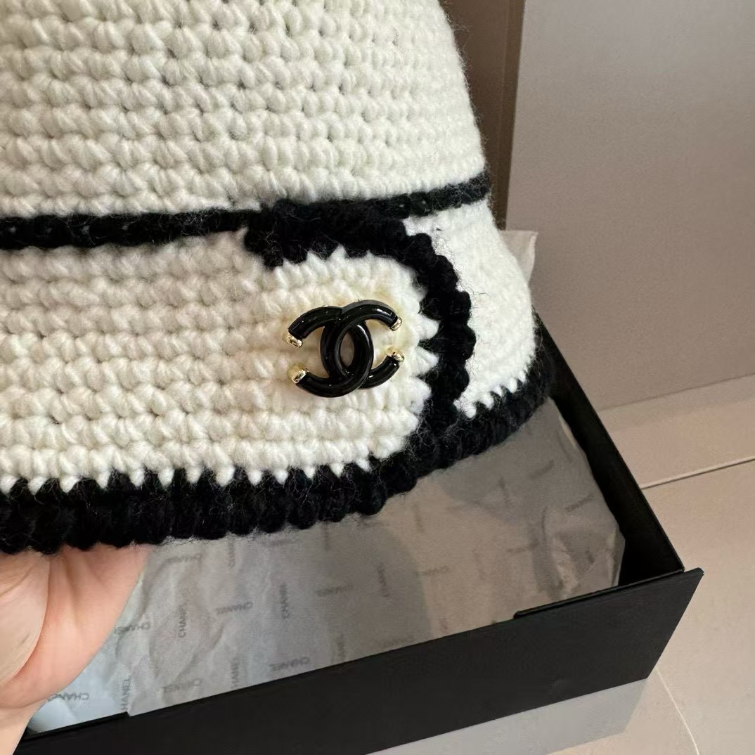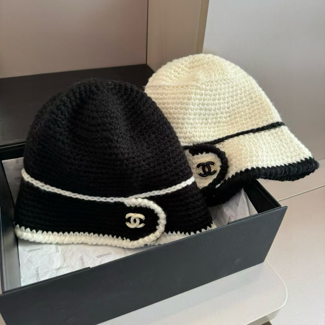 CHANE1 黒と白の配色ウール帽子【50%割引+送料無料】